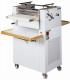 Variable speed motor not included in this machine (however it is equipped with the timed selection[...] Details...  Machine for the production of rolled-up bread-sticks ofdifferent sizes with a manual pick-up system. This machine is characterized by single cutting into theloading dough, to give the product a rough appearance. The machine can also produce small French bread loafs. Hourly output: approx. 150 to 200 kg.[...] Details...  Work all kinds of dough, even of very thin thickness.- Scrapers can be removed in just a few seconds for dailycleaning.- Rolling cylinders are calibrated, polished and chromium-plated with hard chrome.- The bearing are all screened to avoid contamination.- Adjustable speed conveyors avoid causing wrinkleson the pastry.- The low voltage electrical supply can be controlled either by hand or by a foot-operated pedal and the electrical system is linked to accident proof safety guards.- The Frame machine[...] Details...  Painted steel sheet bedplate, mounted on castors.Anodized aluminium sides.- Ball bearings with double seal on all rotating parts.- Ground and thickness chrome-plated steel rollers.- A simple device stops the upper belt and the machinebecomes a roll unit for the rolling of small quantities of dough.- The machine is supplied with infeed belt for the automatic feed of the dough into the rollers.- At the end of the work cycle, the finished product canreturn towards the operator.- It is possible to produce[...] Details...  Bread grinder is rugged, reliable durable and give safety tothe user. The structure is stainless steel inox and the mouthof sifter in aluminium casting. The grinding unit permits theselection of two different granulated sizes. The safety device is maked with three covers inside the mixing tank.[...] Details...